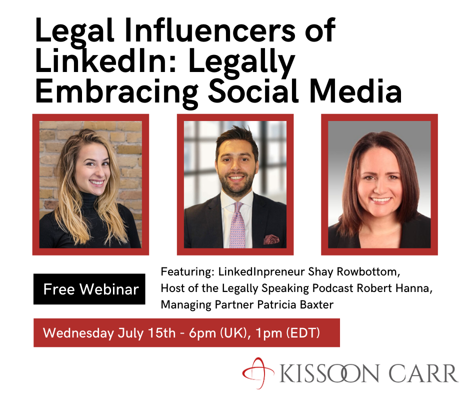 KC Partners will be holding a webinar event on 15th July at 6pm (UK) /1pm (EDT) on embracing social media within the legal industry. This will involve content on how lawyers can specifically use videos to boost business and why personal branding is so important, particularly in the current climate.